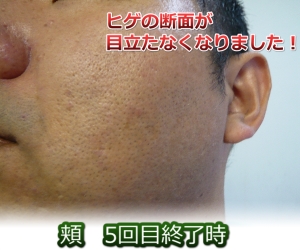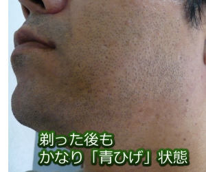 頬については、全体的に濃い毛がびっしりと生えており、2回目の写真を見ていただくとわかるように、剃ったあとの青髭状態が気になっていました。